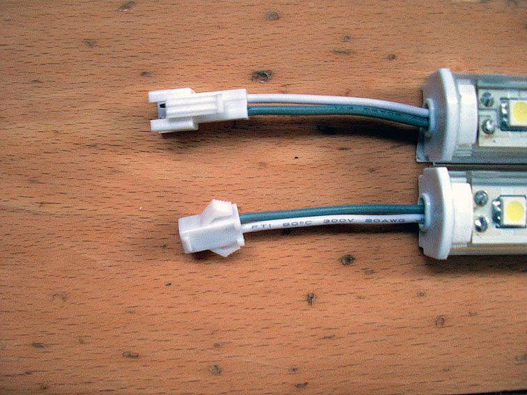 這次買的是30公分長的燈條,每隔5公分有3顆三晶的5050晶片一條總共是18顆。有著透明外殼兩端是公母插的快速接頭,可以單獨使用一支、或是串連兩支、三支…因有壓降的問題最多可以串到6支180公分長。